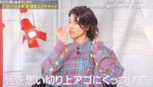 舌の位置を保つことで、口元のシワを引き締めるトレーニング法です。