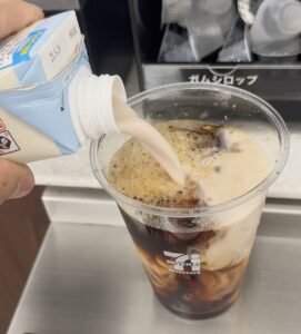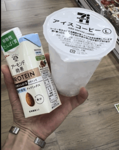 アーモンドミルク(プロテイン10g入り)とアイスコーヒーLサイズです。