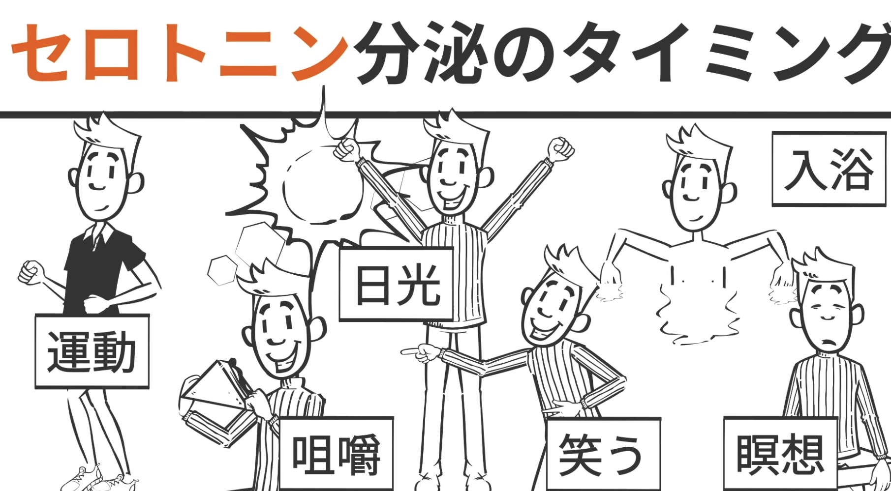 ・リズミカルな運動・咀嚼・日光・笑う・入浴・瞑想(マインドフルネス)など、